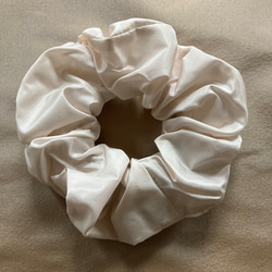 艶感は上品だけど、生地の張りのせいか上品すぎずカジュアルにも合わせやすそうなシュシュで、とても気に入りました!