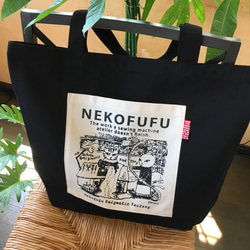 要領が悪く、いつも空回りしている愛すべき猫の夫婦の生活や仕事ぶりをイラストにしています。イラストは手描きとパソコンで作り、シルクスクリーン版画にし、そちらをバッグのポケットなどにデザインとして組み込み、展開しております。