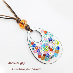 「ガラスフュージング」「ガラス絵付け」「ステンドグラス」をベースにコラボ作品も製作します。加えて「伝統美観地区」の雰囲気に合わせて、「和」のアクセサリーの製作販売も始めました。
