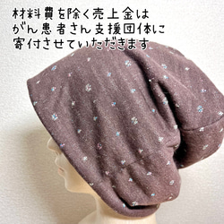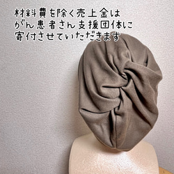 この帽子の売上は、材料費を除き 全てがん患者サポート団体に寄付をさせていただき、患者さんの支援に充てられます。