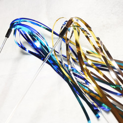 自分の家の子たちのために作ってきた、キラキラテープを使った手作りのねこじゃらしを販売しています。