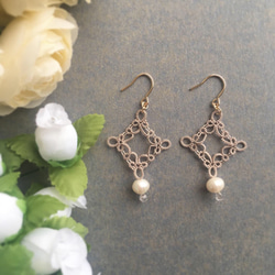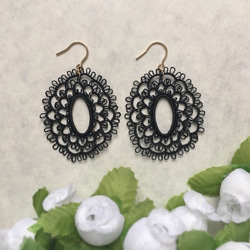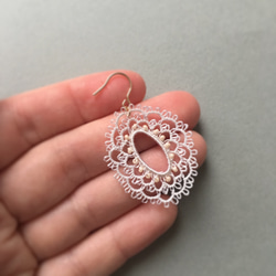 タティングレースの耳飾り、ぜひたくさん身につけてくださいませ。シックな2点ですので品良くお顔周りを華やかにしてくれると思います。