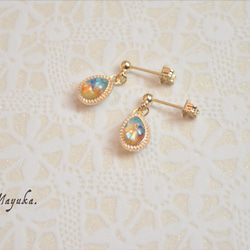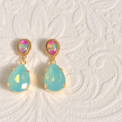 エメラルドブルーはとてもかわいくて、しずくの方は絵画のように上品です。前回購入したピアスも愛用してます。ありがとうございました。