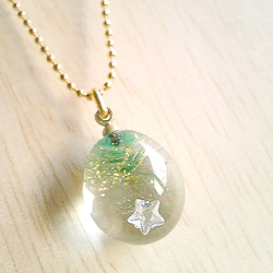 胸の真ん中できらきらと輝き、清々しい印象です。