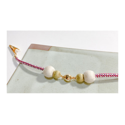 糸を巻いたパーツ【実り】は独自の巻き方で木綿や絹糸を使用してひとつひとつ制作しており、光沢感が美しく繊細な作品となっております。