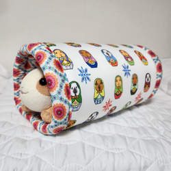 ふわふわで中の布はひんやりと涼しそうで飼い主が腕を通しても気持ちいいのでモルにとっても快適そうです。丁寧な作り&とってもかわいい作品をありがとうございました。