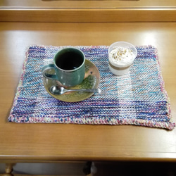 ざっくりと厚地で、色は涼しげですが冬の温かい飲み物や食べ物にもぴったり合いそうなマットです。