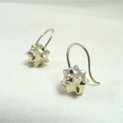 耳たぶのちょっと下にビックリマークの点のような感じでぴかっと光ってとっても可愛いです。コンペイトウ。星の王子さまの星みたいな丸みのある北極星。上品でクリスマスでもいいかな。とても気に入りました!