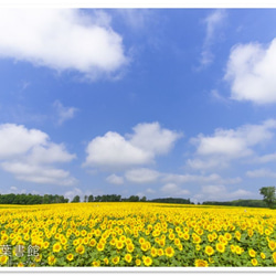 先ほど素敵な写真が届き早速フレームに入れて飾りました 以前北海道旅行をした時のひまわり畑を思い出します 懐かしいです ご丁寧なメッセージありがとうございました