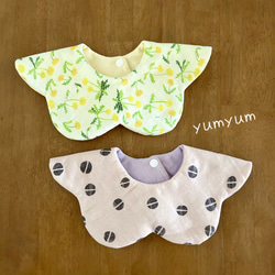 主に【ポンポンピエロスタイ】や【花びらスタイ】などのベビースタイをご用意しています。
