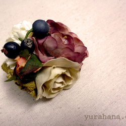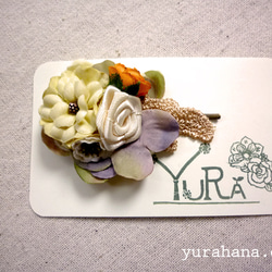 コサージュはピンもクリップも付いているので 洋服にも髪の毛にもアレンジが効きそうで これからの活躍を楽しみにしています。