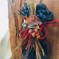 とても個性的な色彩で素材も珍しく楽しいお飾りで面白いです。28日に飾らせて頂きました。ありがとうございました。