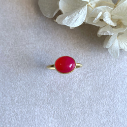 とても綺麗なフューシャピンクですので眺めているだけで元気が湧いてきます。はっきりした色なので、この大粒の石とひとまわり小さいサイズの石と迷いましたが大粒にして正解でした。といいますか、大変気に入りましたので、小さいサイズの石の方もゲットしたくなりました(笑)