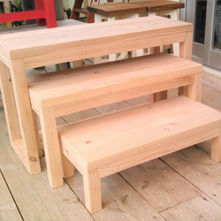 本日受け取りました。猫トイレに上がるために購入しました。1段ずつの高さが低いため登りやすそうです。木のにおいも癒されます。ありがとうございました。