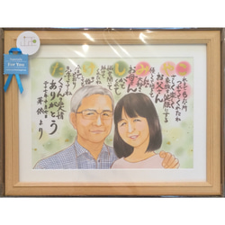 母に渡しました。絵も色も気に入ってくれたみたいで嬉しいです♪ 最高のプレゼントができました!想いを形にしていただけてすごく満足です。私のこだわりが強くてたくさん希望を聞いてくださり、また何度も下書きを書き直していただきありがとうございました…!