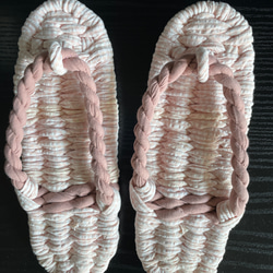 自分と母の分で2足購入しました。しっかり編んであり、前坪も丁度よい感じです。届いて早速2人で履いています。サラッとしていて快適で、履き心地も良いです。もうスリッパに戻れません。ネットに入れてお洗濯も出来るとのこと。ありがとうございました。ぺちゃんこになるまで履きそうです。