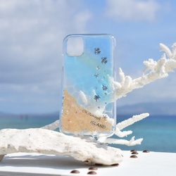 黄ばみにくい高品質レジンを使い、透明感のあるブルーや水紋を取り入れたスマホケースやアクセサリーを制作しています。