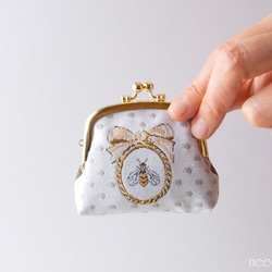 柔らかい生地に丁寧な蜜蜂の刺繍、お守りコインを入れるのにピッタリで使うのが今から楽しみです。