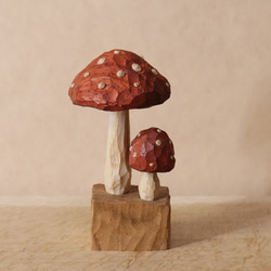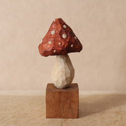 幸せの象徴と言われているベニテングタケがモデルですので、木の温もりと共に幸せな気分になって頂けたら幸いです。