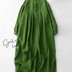 癒し系のグリーンで、着ていると気持ちがほっこりします。優しい印象のグリーン系のワンピースはあまりないので、購入して良かったです!