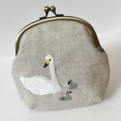 緑の森の中の小鳥の刺繍をしたポーチです。