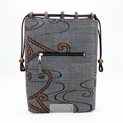 フリルバッグA4サイズ 正絹 ・銘仙 矢羽柄(ピンク色)