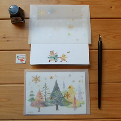 【封筒ハンドプリント】エゾリスと森のベリーレターセット