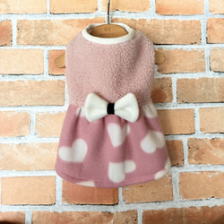 フリース生地と首や袖周りは伸縮性のあるリブを前身頃(お腹)はニットを使用し、着せやすくなっております。