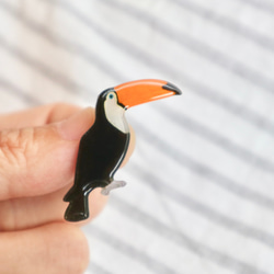 (プラバンを使いデザインし、着色面はニスでコーティング。ブローチピンとの接着部分はレジンでコーティングしてあります。)