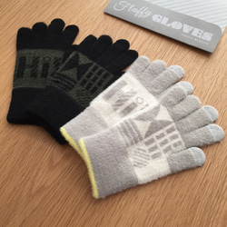 スマホ対応手袋 高感度 ふわふわ あったか fluffy gloves "Hi!' グレー 172005 防寒