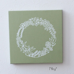 木製パネルにコットンの生地を貼っています。