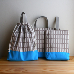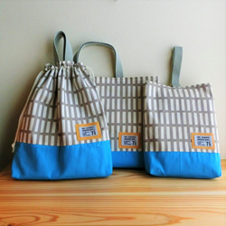 【送料無料】レッスンバッグ 上履き袋 体操着袋 セット 北欧 黒ストライプ/ベージュ