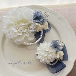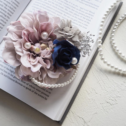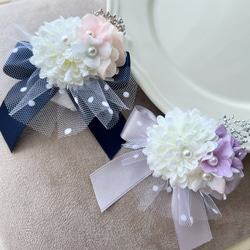 卒業式や入学式、結婚式のパーティや贈り物、特別な日のお出掛けにオススメの落ち着いたカラーデザインながらも華やかで可愛らしいコサージュとヘアアクセサリーが楽しめるアクセサリーです♡