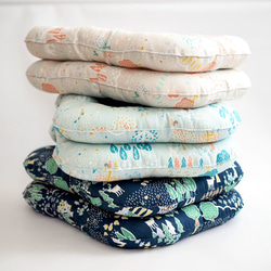 真ん中の座面部分はキルト芯を2枚、そのあいだに防水シートを挟んでいます。万一おしっこをしてしまっても裏に染み出しにくい作りになっています。