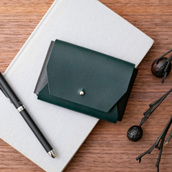 《開いたときに目を引く3色目》3色使いの本革名刺入れ(グレージュ×グリーンブルー×ブラック)【配色カスタム無料】