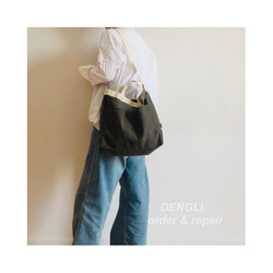 ・パラフィン(ロウ引き)加工された帆布を使ってバッグを作っています。 ・パリッとした独特の質感が特徴です。