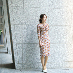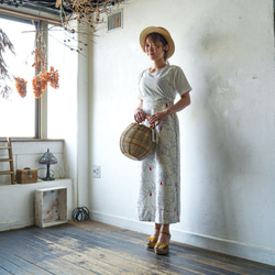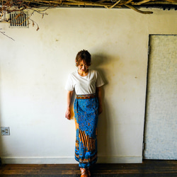 壺?瓶?から水がポコポコ出ているインパクト大のアフリカンファブリックがとても気に入ったので、右半身に大胆にポケットを付けてアクセントに。