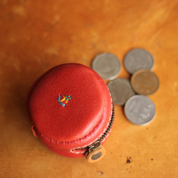 メインのフタを開けると中央にファスナー式の小銭入れがあり、その手前に左右1個ずつカードポケットを配置しています。
