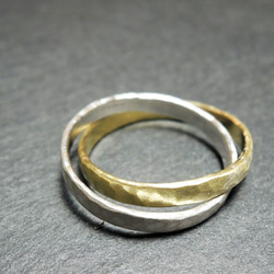 4.5mm幅の真鍮とシルバーの槌目ハーフリング(槌目マット仕上げ)