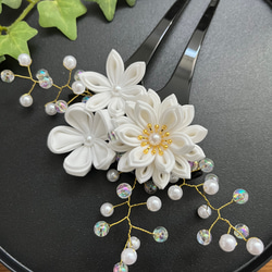 大きめのお花(約7センチ)Uピン、ヘアクリップ小花ガーランド付1点、小花3点Uピンのセットです。