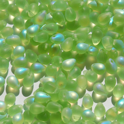 30個 6x9mm チェコビーズ ドロップ オリーブ グリーン クリア ppnalia