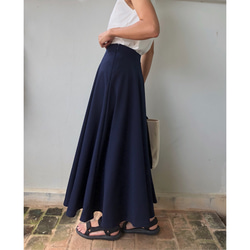 後ろにタック 前にもタックとステッチがあるので、自然な膨らみと流れがでて、お腹周りもカバーしつつも、体のラインをきれいに見せてくれるように仕立てました。