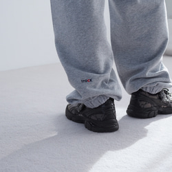 裾に向かって緩やかに広がるフレアのリブパンツ。