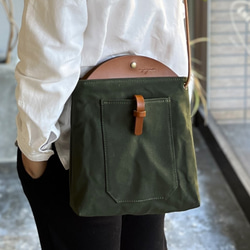 身軽にお散歩♪帆布とレザーの落ち着いたベーシック色ポシェット