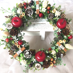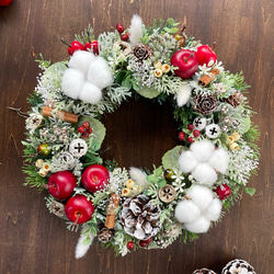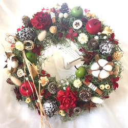 アーティフィシャルフラワー、ドライ木の実使用ですので、屋外、屋内を問わず、何処にでもお飾りいただけます。
