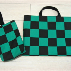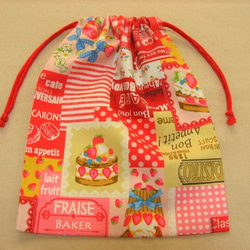 同柄のサイズ違い巾着やレッスンバッグなども出品しています。