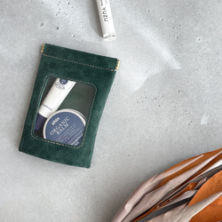 ちょっとした物の整理や持ち運びに便利なピッグスエードのポーチです。