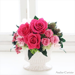 ・プリザーブドフラワーの特性上、配送中に葉、実の一部が梱包内に落ちてしまう事がございます。予めご了承ください。