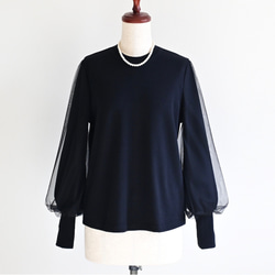 『主役級アイテム♦︎卒業フォーマル学校行事♦︎チュールレース♦︎レイヤードバルーンスリーブニット♦︎ブラック』