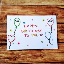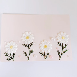 印刷やイラストとは違う、糸の柔らかな質感がほっこり可愛いメッセージカードです。糸の質感とキラキラのラインストーンが立体的で一枚で見栄えがします!